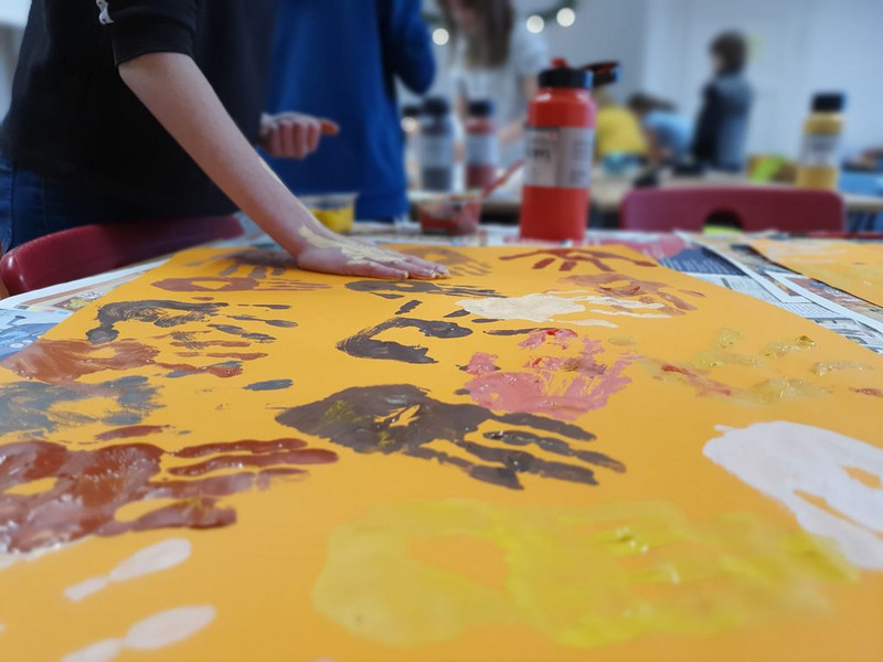 Die Schülerinnen und Schüler erhalten die Möglichkeit verschiedenste künstlerische Ausdrucksmedien - wie etwa