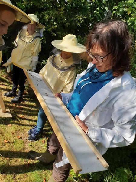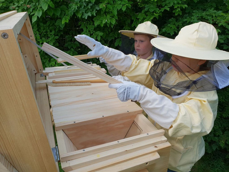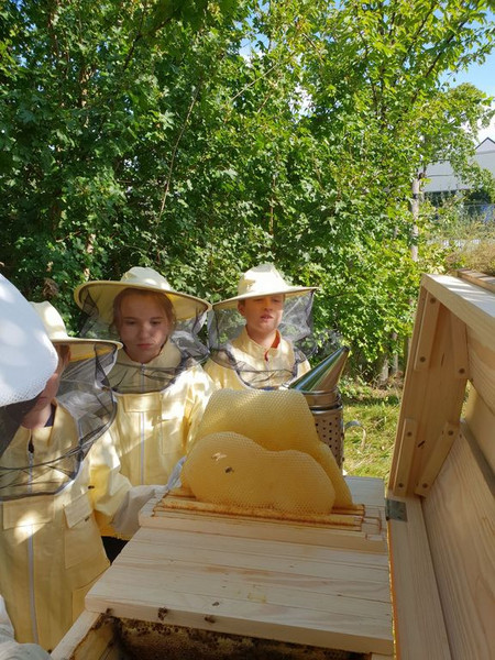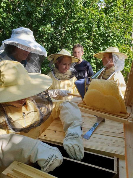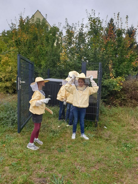 An der AG Imkern können unter der Leitung von Frau Wiedemann jedes Jahr interessierte Schüler aus den 5. Klassen teilnehmen. Es ist immer wieder eine Freude zu sehen, wie die "Jungimker" mit großer Neugier und Elan dabei sind.