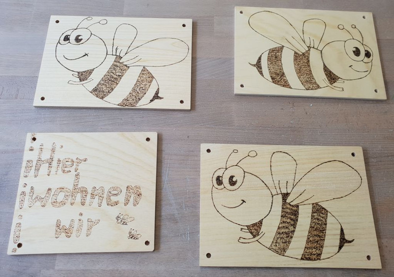 Am Anfang sind die Bienen ziemlich zügig in Richtung Einfluglöcher gelaufen. Ein Teil von ihnen war aber der Meinung, sie müssen sich das neue Heim erst mal von außen eine Weile ansehen. Als "Haufen" oberhalb der Fluglöcher haben sie eine längere "Beratung" gemacht, bevor sie dann endgültig "eingezogen" sind.