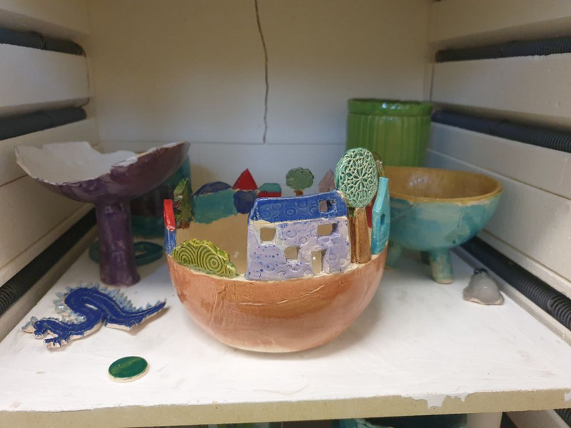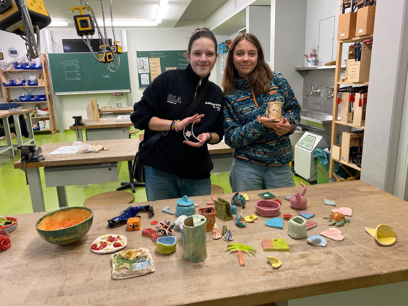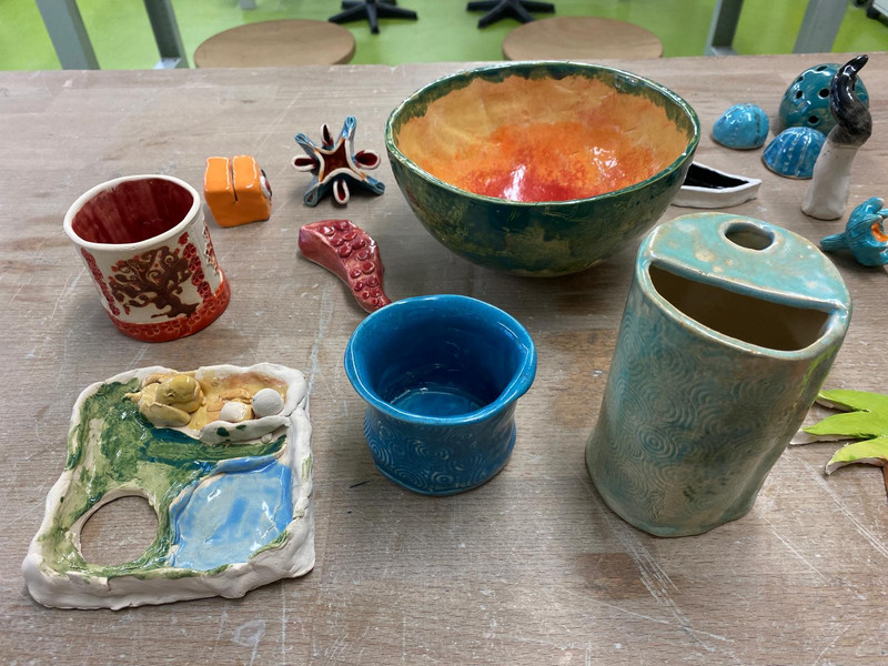 Unter der Leitung von Christiane Kittelmann und Ulrike Hensel erlernen die Schüler verschiedene Techniken im Umgang mit Ton kennen. Schrittweise entstehen immer anspruchsvollere Objekte. Der Fantsie sind dabei keine Grenzen gesetzt. Dank eines eigenen Brennofens können wir alle Arbeitsschritte im Haus ausführen.