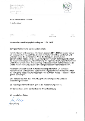 lnformation zum Pädagogischen Tag am 22.04.2026
