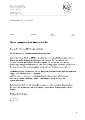 Vorhergesagte extreme Wettersituation