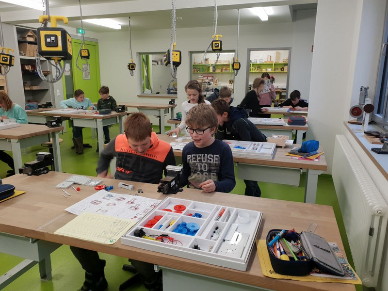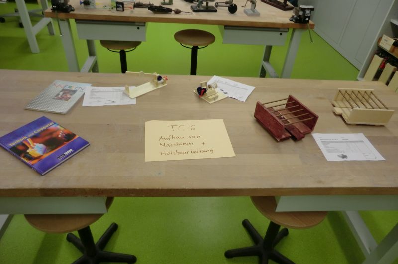 In der Klassenstufe 6 beschäftigen wir uns mit dem Aufbau von Maschinen. An verschieden Objekten wird untersucht, wie Bewegungen übertragen werden. Die Schüler können mit Modellbaukästen vorgegebene und auch eigene Konstruktionen bauen und testen. In der Fachpraxis werden zudem Funktionsmodelle aus Holz und Kunststoff hergestellt.