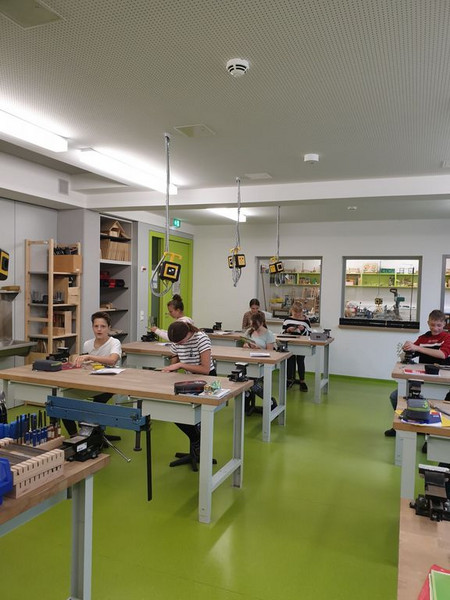 Auch die handwerklichen Fertigkeiten kommen nicht zu kurz. Fleißig wird geplant, gelötet und gebaut. Je nach den Wünschen der Schüler variieren hierbei die Projekte.