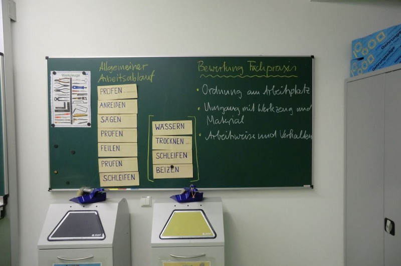 Bevor es mit der Fertigung des Klappbrettes losgehen kann, muss eine genaue Planung erfolgen. Zuerst wird eine technische Skizze und eine Stückliste angefertigt. Es folgt die technologische Planung, in der alle benötigten Arbeitsmittel und Werkzeuge notiert werden. Diese Unterlagen bilden die Grundlage des selbstständigen Arbeitens während der praktischen Phase.
