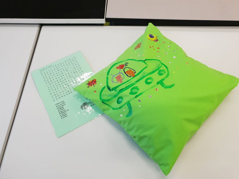 Neben den wirtschaftlichen Aspekten liegen die praktischen Schwerpunkte in der Fertigung. Wir haben uns für die Umsetzung der Lehrplaninhalte für das Klappbrettspiel aus Holz und ein individuell gestaltetes Kissen entschieden.