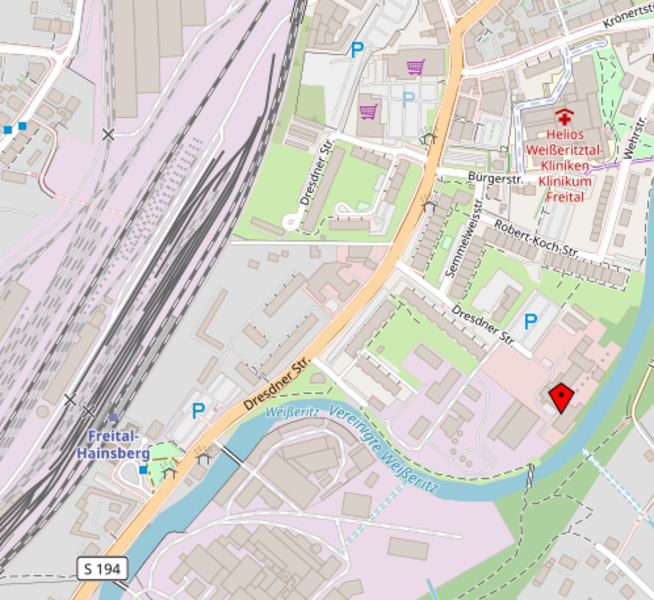 Sie erreichen uns von Dresden aus kommend auf der Dresdner Str. 303 (Einfahrt links nach der Kreuzung zur Helios-Klinik/Bürgerstr.), von Tharandt/Rabenau kommend ca. 300m nach dem Bahnhof Freital-Hainsberg rechts abbiegen.