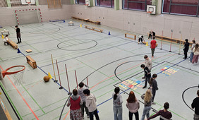 Gemeinsam werden Crêpes gebacken und gegessen, nachdem man mit sportlichem Geschick und dem Lösen von Sprachaufgaben Meere, Ländergrenzen und Berge überwindet, um ans Reiseziel zu kommen.