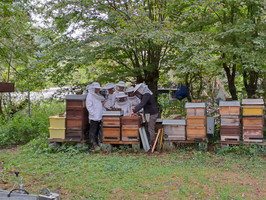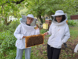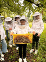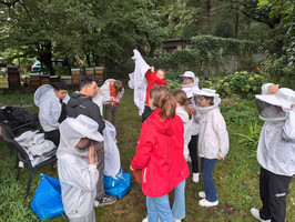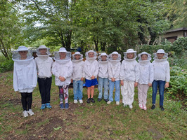Schule findet schon längst nicht mehr gebunden an ein Gebäude statt. Außerschulische Lernorte befähigen die Kinder, ihr Wissen in einer realen Kontext einzuordnen und anzuwenden. Die Kinder der Klassenstufe 6 (SJ 2024/25) besuchten zu diesem Zweck im Rahmen des Biologieunterrichts einen Imker und konnten sich im wahrsten Sinne des Wortes in einen Bienenstock hineinfühlen.