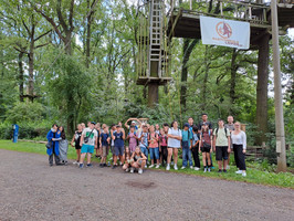 Soziale Gruppen unterliegen bestimmten Gruppenfindungsphasen. Um die Kinder dabei zu unterstützen, ihre Rollen in einem Team zu finden oder diese zu festigen, spielen soziale Unternehmen mit pädagogischem Hintergrund eine zentrale Rolle. Im Rahmen der Kennlerntage für die neuen fünften Klassen haben auch die Schülerinnen und Schüler der Klassenstufe 6 (SJ 2024/25) in verschiedenen Ausflügen ihre Gruppenzugehörigkeit ausgelotet. Unter anderem Stand ein Besuch des Kletterwalds, das Drachenbootfahren und eine 10 km Wanderung um den Markkleeberger See auf dem Programm. Dort zeigt sich auch unser Konzept der "Bewegten Schule".