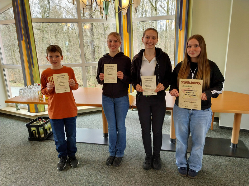 In den verschiedenen Klassenstufen mussten die 39 Teilnehmer viele knifflige Aufgaben lösen. Für unsere Schule konnten Jannis (Klassenstufe 5), Freyja (Kl. 6), Theresa (Kl. 7) und Josephine (Kl. 8) gute bis sehr gute Platzierungen erzielen. Josephine rechnete sich mit einer grandiosen Leistung auf den ersten Platz und qualifizierte sich somit für das Finale im Mai in Chemnitz.