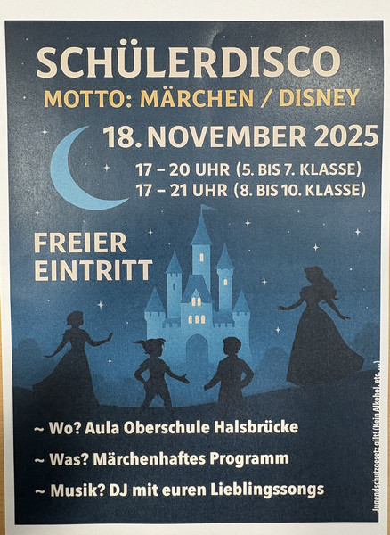 Am 21.11.2023 fand die jährliche Schülerdisco in der Oberschule Halsbrücke mit dem Motto „Overdressed“ statt. Die diesjährigen 9. Klassen planten und organisierten mit Frau Werner und Frau Förster alles. Die Schuldisco ging um 17:00 Uhr in der Aula los. Das Team vom Pausensnack war dieses Jahr natürlich auch wieder mit dabei und verkaufte Essen und Getränke. Die Schüler aus der Klasse 10 spielten coole Hits und die Stimmung war sehr cool. Um 20:00 Uhr mussten die 5. bis 7. Klasse leider nach Hause gehen. Für die 8. bis 10. Klasse ging die Party aber weiter. Um 21:00 Uhr mussten die anderen Klassen auch nach Hause gehen und die 9. Klassen mussten wieder alles aufräumen.