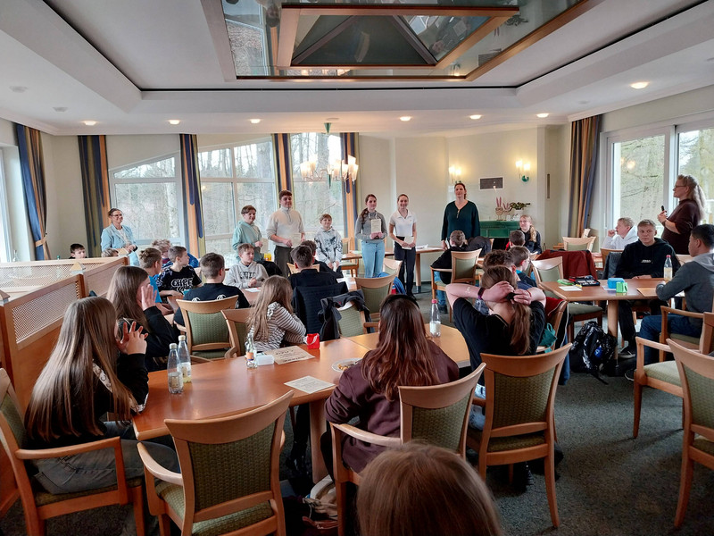 Insgesamt nahmen die Klasse 9c sowie sieben weitere Klassen anderer Schulen an dem Wettbewerb teil. Die Klasse 9c erreichte dabei den 3. Platz und wurde aus diesem Grund zur Preisverleihung eingeladen. Vor der eigentlichen Preisübergabe erhielten die Teilnehmenden weitere Informationen über die Arbeit der Wirtschaftsjunioren und bekamen zusätzlich grundlegendes wirtschaftliches Wissen vermittelt.