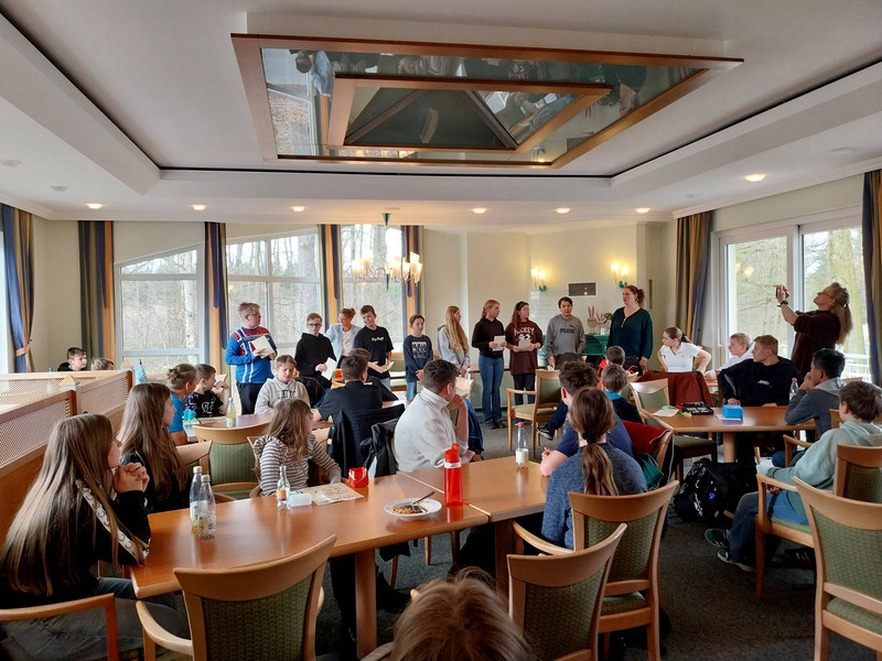 Im Anschluss fand die Preisverleihung statt, bei der die Klasse 9c ein Preisgeld in Höhe von 50 Euro erhielt. Danach bestand die Möglichkeit, Gespräche mit verschiedenen Anwesenden zu führen und Fragen zu stellen.