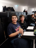 Am Flughafen angekommen, wurden wir von einem Mitarbeiter begrüßt. Er hielt einen Vortrag über Flugkräfte und wir mussten Aufgaben zum Vortrag erarbeiten. Als der Vortrag nach 45 Minuten zu Ende war, mussten alle durch die Sicherheitskontrolle und wurden danach mit einem Bus zu einer Rundfahrt über den Flugplatz abgeholt. Wir haben verschiedene Flugzeuge gesehen, aber auch zwei Helikopter von der Polizei und die Feuerwehr des Flugplatzes. Der Mitarbeiter, der uns den Vortrag gehalten hatte, erklärte im Bus noch mehr. Nach der Führung machten wir uns wieder auf den Weg zur Zugstation. Der Zug kam mehrmals nicht, weshalb entschieden wurde, mit dem Bus und der Straßenbahn zum nächsten Bahnhof zu fahren. Dort kam der Zug nach einer halben Stunde und wir kamen zwei Stunden später als geplant in Freiberg an.