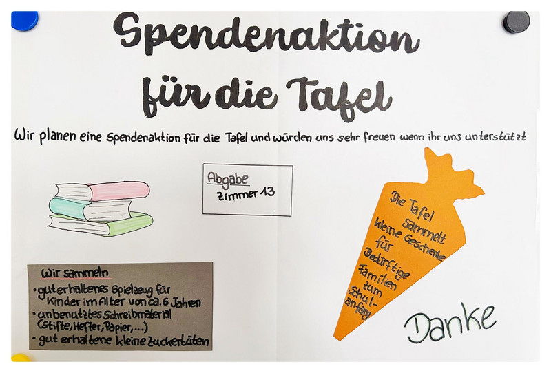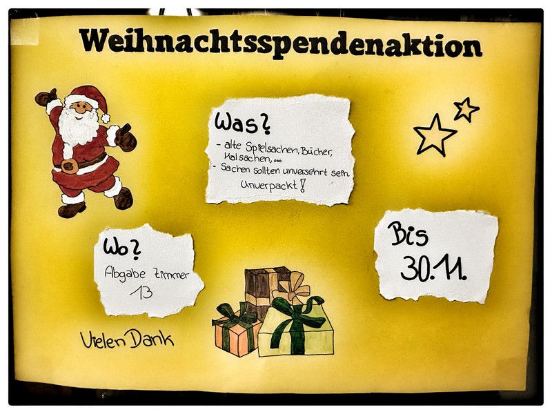 Wenn ihr etwas spenden möchtet, sprecht mit euren Eltern und gebt die Gegenstände bis zum 25.11.24 bei Frau Förster oder im Zimmer 13 ab.