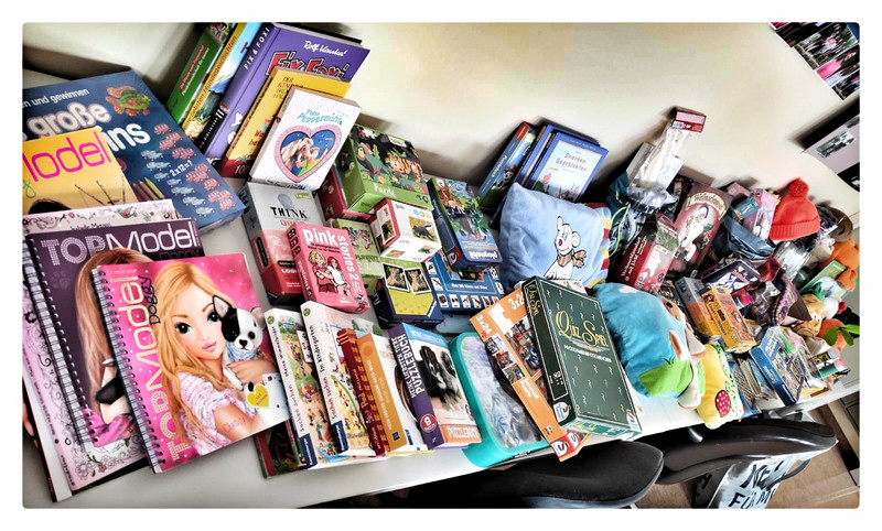 Durch eure Spenden haben wir 31 CDs/DVDs, 100 Bücher, 100 Spiele, 30 Puzzles, unzählige Kuscheltiere,1 Puppenküche, Autos, Puppen und vieles mehr gesammelt. Die Tafel Freiberg möchte ca. 360 Kinder und Jugendliche beschenken und durch eure Spenden wurde den Organisatoren eine große Last abgenommen.