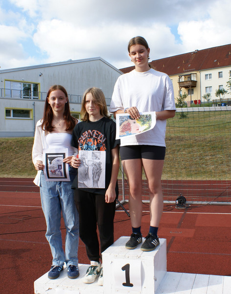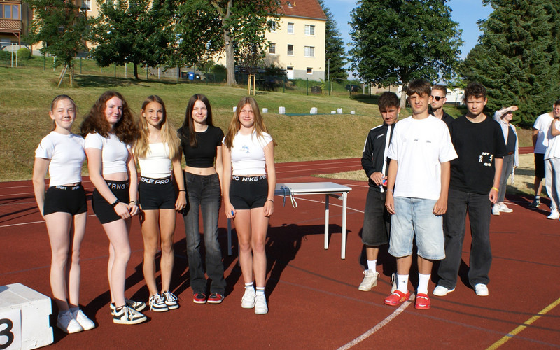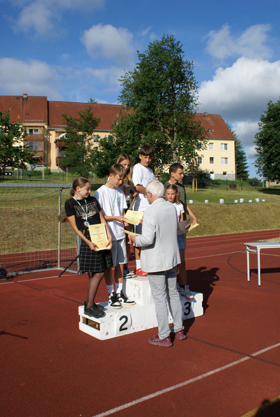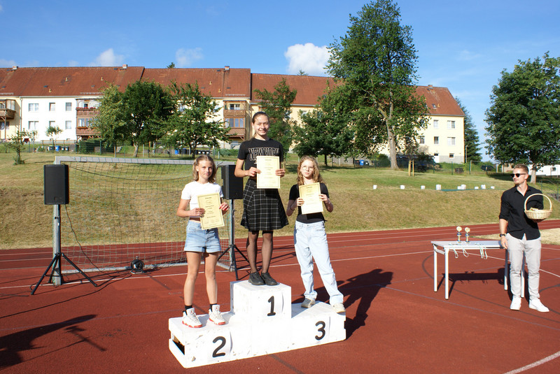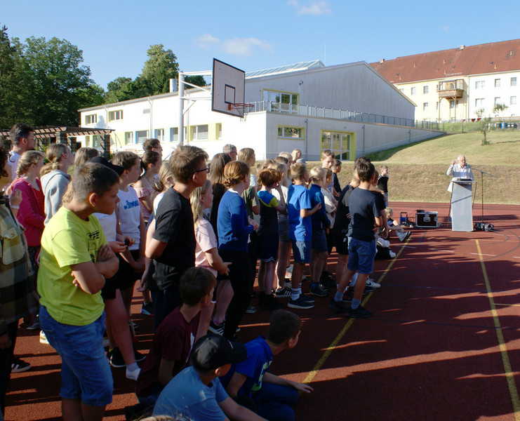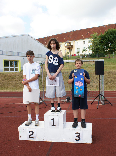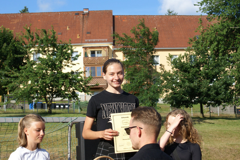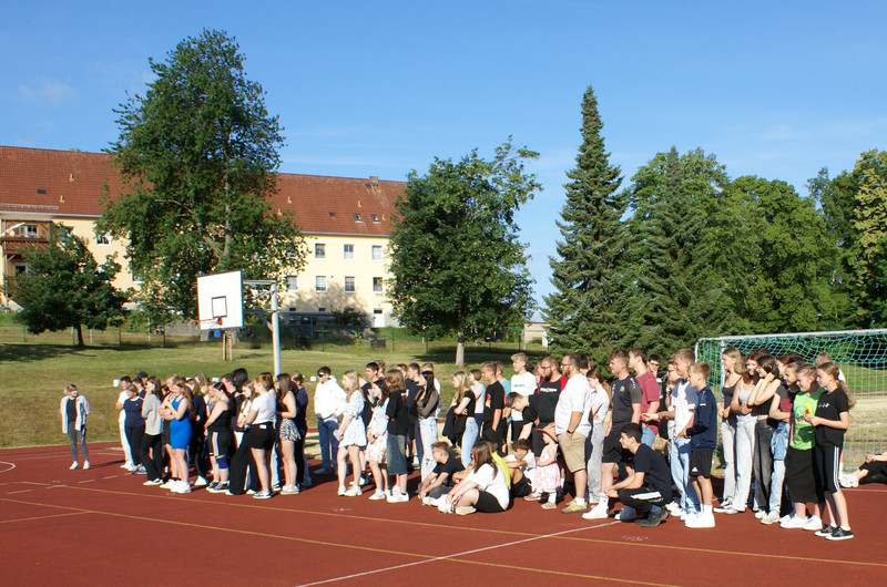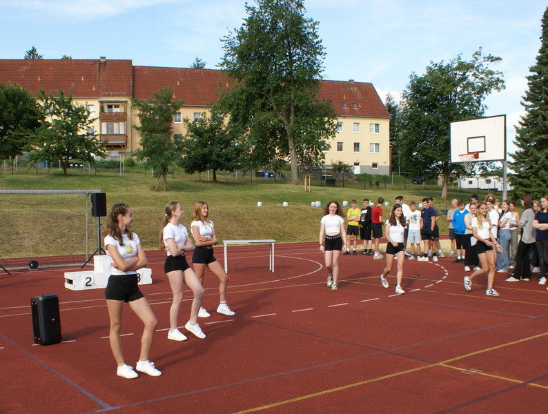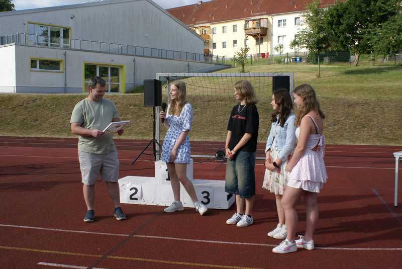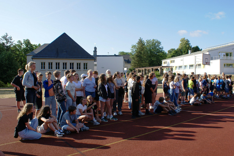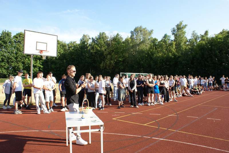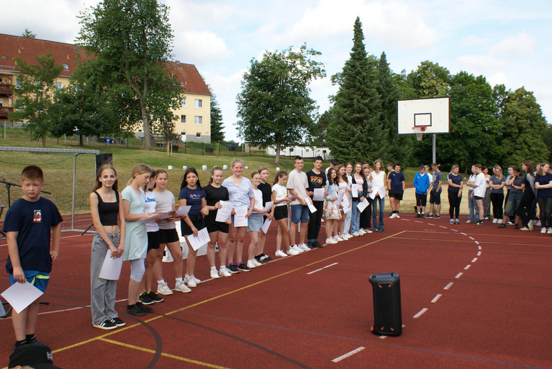 Traditionell wird das Schuljahr mit einer Vollversammlung beendet. Alle Klassen versammeln sich dazu auf dem Sportplatz. Ein wichtiger Bestandteil ist die Siegerehrung zu unserem Schulsportfest. In den Klassenstufen 5-9 wurden die Besten im leichtathletischen Vierkampf ausgezeichnet.