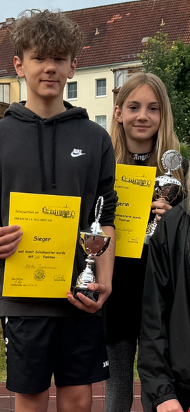Schulmeisterin und Schulmeister sind Marylou Lysann Zschoge und Fritz Schwanke. Vielen Dank dem Freizeit- und Erlebnisbad „Sumpfmühle“, welches zwei Zehnerkarten zur Verfügung stellte.