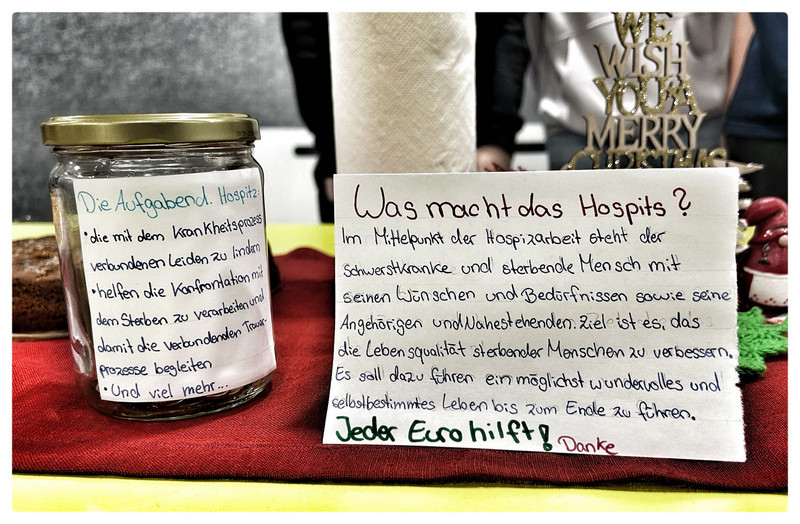 Im Rahen unseres Kuchebasars (8c) haben wir ein Spendenglas zu gunsten des Hospiz Freiberg aufgstellt.