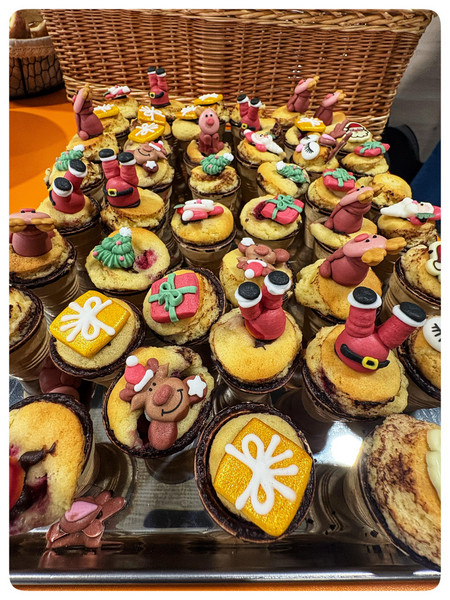 Neben klassischen Kuchen und Popcakes gab es warmen Kinderpunsch, frische Krapfen und knusprige Waffeln. Besonders beliebt waren die einzeln liebevoll verpackten, handgemachten Häuser, Anhänger und Wichtel aus Keramik sowie kandierte Nüsse und kunstvoll verzierte Lebkuchen. Die Auswahl war reichlich und ließ keine Wünsche offen.