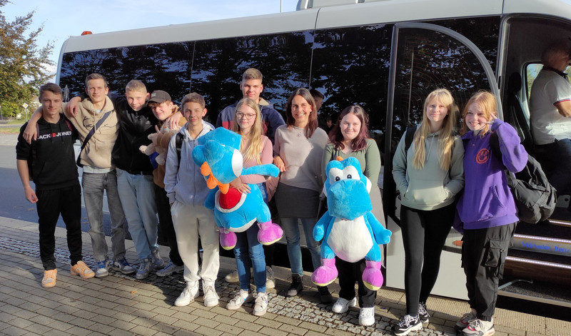 Die Abschlussfahrt der Hauptschulklasse 9 war am 23. Oktober 2023 und ging nach Belantis. Wir haben uns früh um 8 an der Bushaltestelle Wendeschleife/Wohnpark getroffen. Nach einer Weile kam ein kleiner,für uns perfekter, Bus. Wir stiegen ein und fuhren nach Leipzig. Nach anderthalb Stunden hielten wir vor dem Freizeitpark. Wir erhielten unsere Eintrittskarten und eine kurze Belehrung, dann ging es los! Zunächst hat sich unsere Klasse in fünf Gruppen eingeteilt. Drei Zweiergruppen, eine Dreiergruppe und eine Vierer -gruppe. Diese Gruppenpaare sind dann durch Belantis gelaufen und haben jede Menge Attraktionen ausprobiert. Um 12 haben wir uns nochmal getroffen und besprochen, was wir bisher erlebt haben. Dann 13:50 Uhr war Treff am kleinen Bus. Als alle da waren, sind wir los- gefahren. Kurz vor dem Ende der Fahrt haben die Jungs Karaoke gesungen. Es war eine tolle Stimmung.