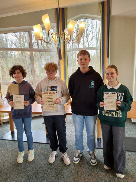 Es konnten gute bis sehr gute Platzierungen von Ludwig (Klassenstufe 5), Sofiia (Kl. 6), Elias (Kl. 7) und Lennox (Kl. 8) erzielt werden. Elias aus der Klassenstufe 7 konnte sich mit seinem ersten Platz zudem für das Finale im Mai in der Kulturhauptstadt Europas, in Chemnitz, qualifizieren. Wir können stolz auf die Leistungen unserer Schüler sein.