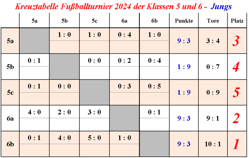 Zum Turniertag am 9. April hat unsere 10c über die Organisation des Mottotages leider vergessen, dass man zum Sport Turnschuhe benötigt. Daher konnte die gemeldete Mannschaft aus Gründen des Unfallschutzes und drohender Verletzungen nicht starten.