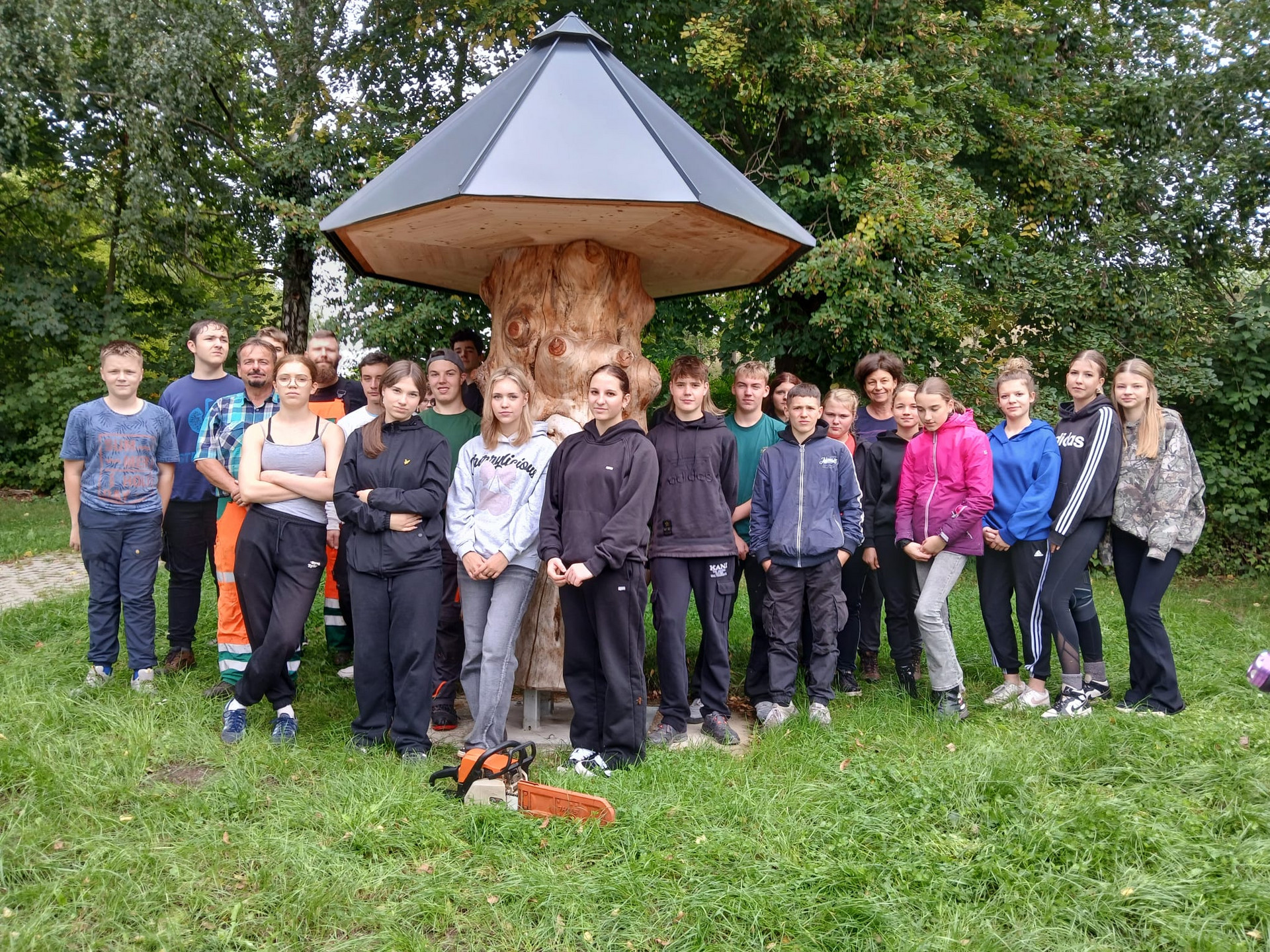 Am 18.09.25 hat die Klasse 9 b der Oberschule Halsbrücke einen sozialen/ökologischen Tag in der Grabentour Reinsberg verbracht. In Zusammenarbeit mit Herrn Illgen und Herrn Liebscher (Mitarbei ter Bauhof Gemeinde Reinsberg) haben wir den Kunstgraben von umgefallenen Baumstämmen mittels Kettensäge (Hr. Liebscher) befreit. Abgebrochene und morsche Äste wurden von uns aus dem Kunstgraben gelesen. An einigen Stellen haben wir noch Zweige und Triebe ver- bzw. abgeschnitten. Unser Dank gilt Herrn Buschkühl, der uns diese Möglichkeit gege ben hat, den Tag so zu gestalten, sowie den Mitarbeitern vom Bauhof, die uns durch diesen Vormittag begleitet haben – durch Herrn Illgen haben wir nicht nur ökologische Eindrucke erhalten, sondern auch noch einige Einblicke in die Geschichte der Graben tour bekommen.