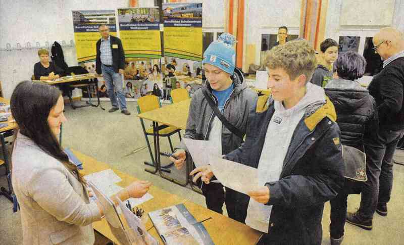Besonders die Schüler ab der achten Klasse waren angesprochen. Sie hatten die Möglichkeit, erste Kontakte für ein Schülerpraktikum aufzunehmen und konnten sogar erste Voraussetzungen für eine Bewerbung für einen Ausbildungsbetrieb prüfen. Logan und Willy nutzten die Chance. Sie wurden von Evelyn Schreiber über die Ausbildung in der Firma Kreisel in Krauschwitz informiert.