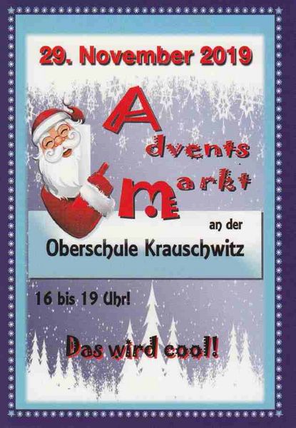 Auch in diesem Schuljahr wollen die Schüler, Lehrer und Eltern der Oberschule Krauschwitz wieder einen romantischen Adventsmarkt auf unserem Schulgelände durchführen. Diesbezüglich laufen bereits umfangreiche Vorbereitungen, um unsere Besucher und Gäste auf die schöne Adventszeit einzustimmen.