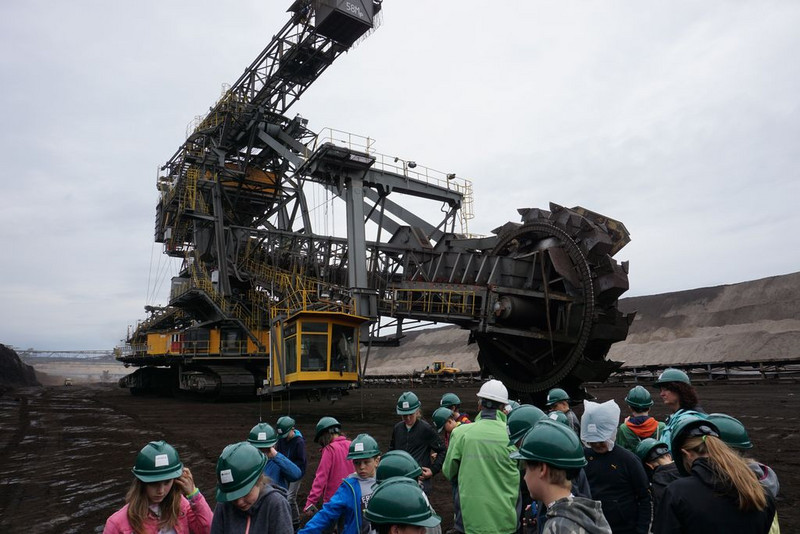 Am 2. Mai fuhren die beiden 5. Klassen der Oberschule Königstein im Rahmen des Geografieunterrichts in den Braunkohletagebau Nochten. Schon die imposanten Türme des Kraftwerkes Boxberg auf der Hinfahrt weckten das Interesse der Schüler. Nach der Ankunft ging es gleich mit einem speziellen Geländebus an und in den Tagebau. Zuerst konnten sich die Schüler von einem Aussichtspunkt einen Überblick über das Gelände verschaffen. Dabei erklärte uns ein Mitarbeiter, wie sich der Tagebau territorial verändert. Es ist schon imposant zu sehen, welche Erdmassen bewältigt werden müssen. Im Anschluss fuhren wir in den Tagebau direkt hinein. Aus nächster Nähe konnten wir die riesigen Bagger sehen, die für das Abtragen der verschiedenen Erdschichten verantwortlich sind. Auch die 600 Meter lange Förderbrücke ließ uns sehr Staunen. Am Ende konnte jeder Schüler einen Brocken Braunkohle als Andenken mitnehmen.