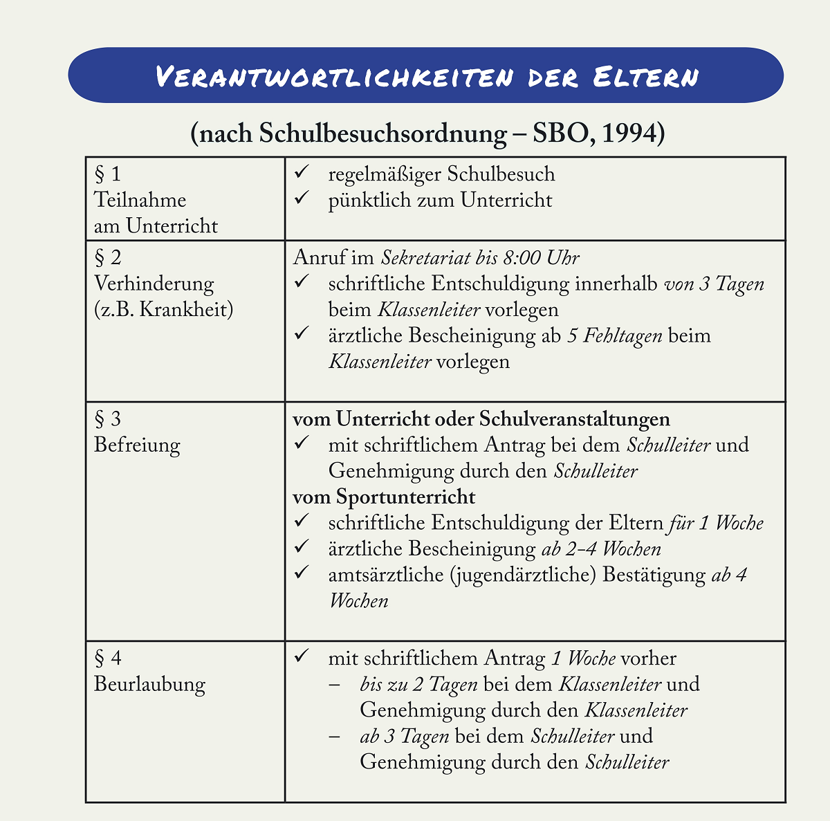 Verantwortlichkeiten der Eltern