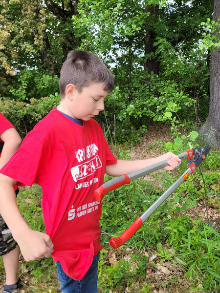 Gewappnet mit Harken, Astscheren und -sägen, Schaufeln, Eimern sowie Gartenscheren versuchten sie den Sportplatz auf Vordermann zu bringen.