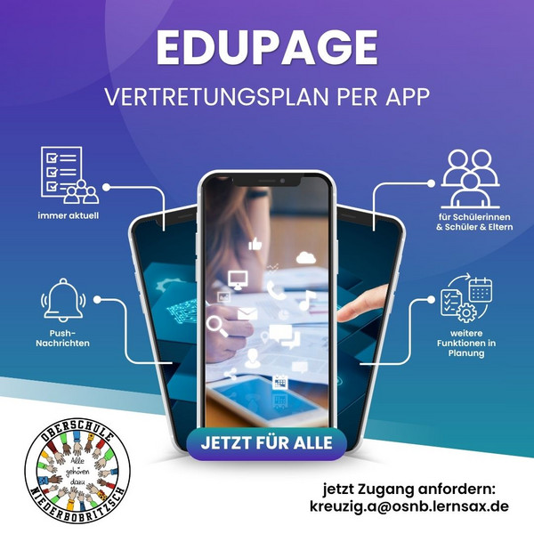 An unserer Schule nutzen wir ab sofort auch die App EduPage zur Bereitstellung des Vertretungsplans.