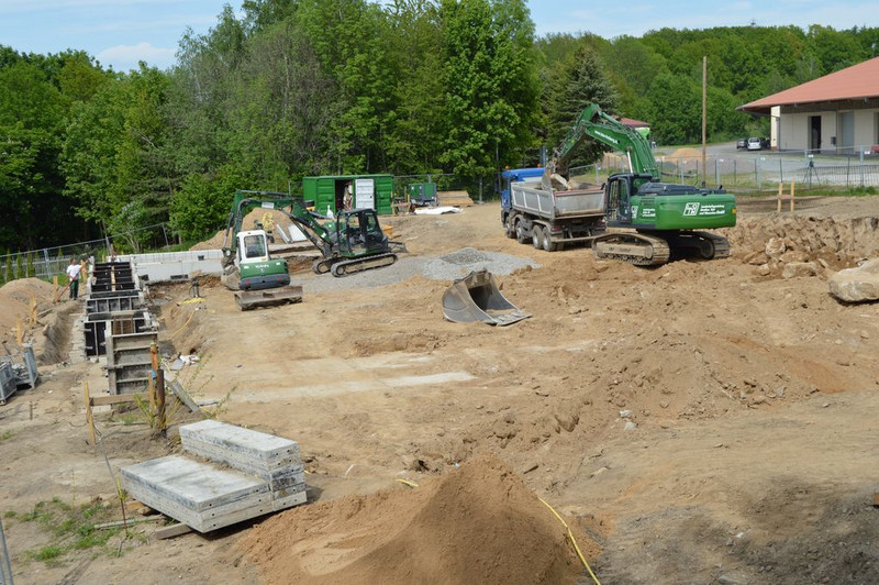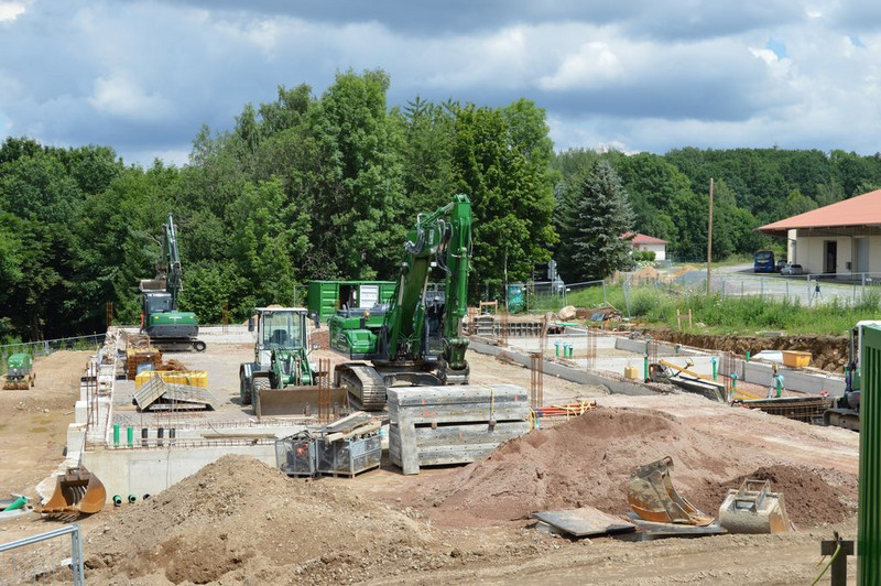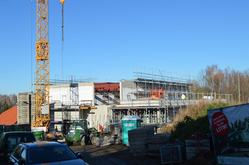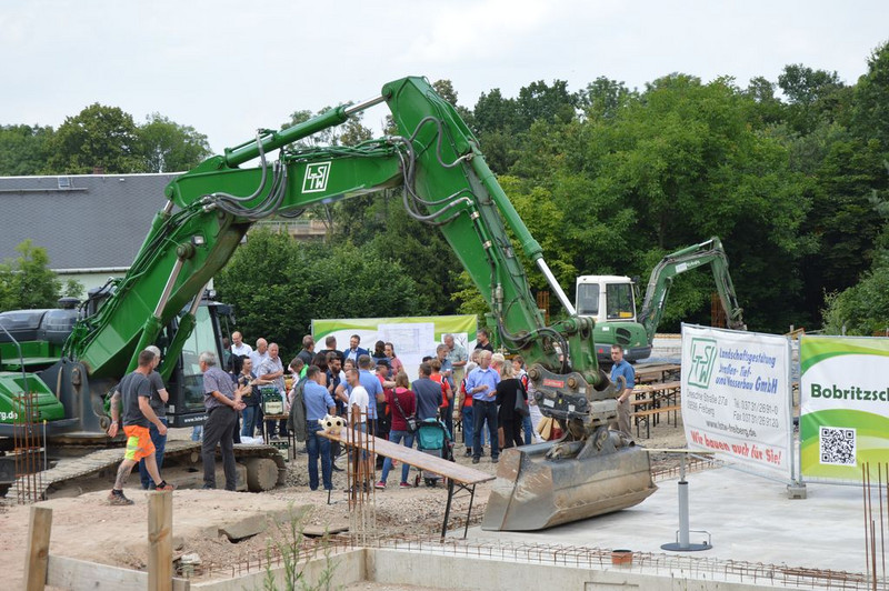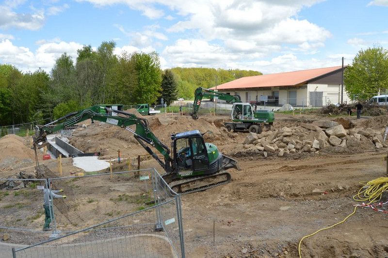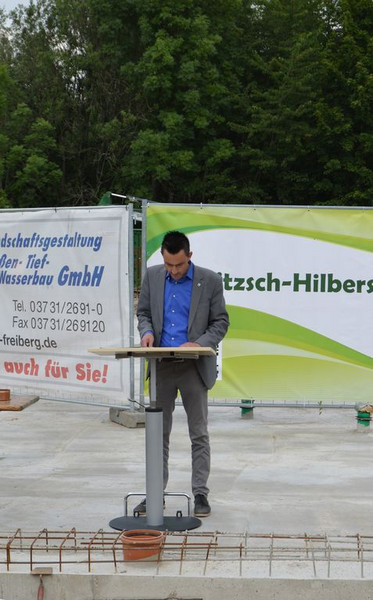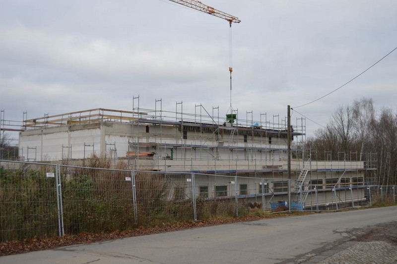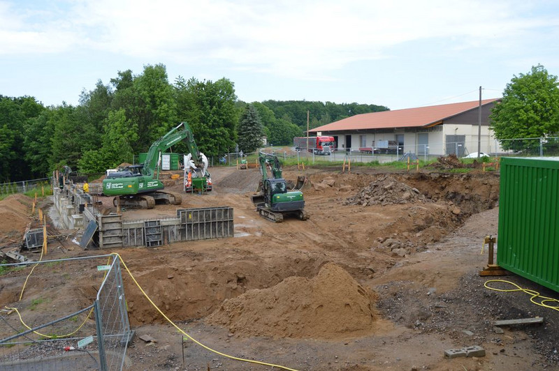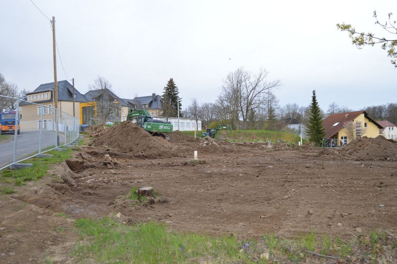 Direkt neben dem Schulgelände der Oberschule steht ein Bauzaun. Es sind Bagger und andere große Baugeräte im Einsatz, denn am 06.05.2021 erfolgte der erste Spatenstich für die Errichtung einer neuen Sporthalle.