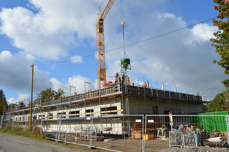 ….. wird nun täglich nach den Herbstferien laut und deutlich in der niegelnagelneuen Sporthalle zu vernehmen sein, wenn die Schülerinnen und Schüler der OS Niederbobritzsch gemeinsam mit ihren Sportlehrern überglücklich die neue Halle in Besitz nehmen werden und ihrem Schulsport nachgehen.
