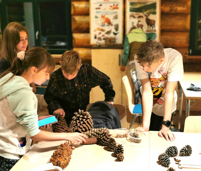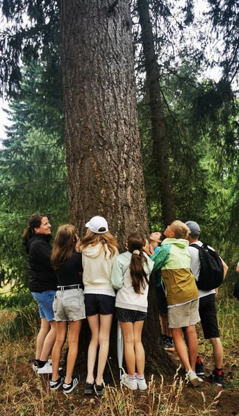 Ein besonderes Highlight der Woche war der Besuch in der Waldschule am Kunnerstein. Dort lernten die Kinder verschiedene Baumarten kennen – darunter auch die eindrucksvolle Douglasie und sogar einen Mammutbaum. Auch verschiedene Zapfen konnten bestaunt und gesammelt werden. Ein Ausflug, der nicht nur lehrreich, sondern auch sehr naturnah war.