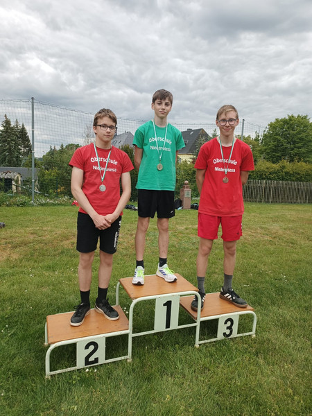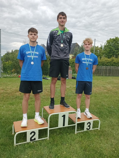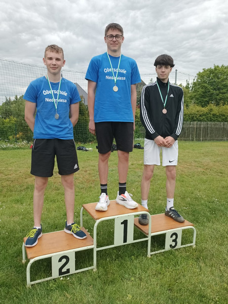 Zeitgleich mit Pauls Vater kommt unser Schiedsrichter wild gestikulierend aus der Uni gerannt und ruft uns etwas zu. Wir halten inne und warten bis er da ist: uns wurde nur der letzte Lauf gestrichen! Wir sollen unbedingt zur Siegerehrung kommen - denn unser erster Lauf war schon gut genug, um uns knapp gegen das Team von oben durchzusetzen und haben so noch den dritten Platz geschafft! Eine unglaubliche Geschichte, die Underdogs aus der Oberschule Niederwiesa setzen sich gegen viele ältere Wettstreiter aus Gymnasien durch und werden Dritte!