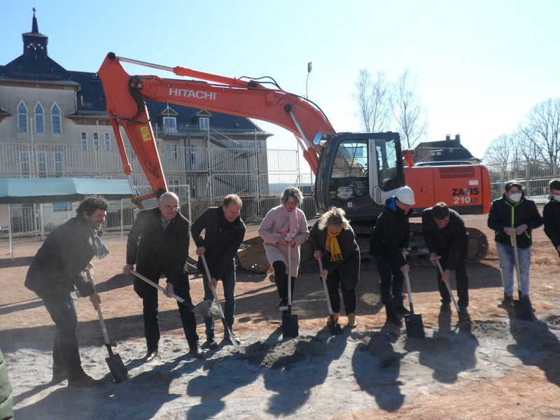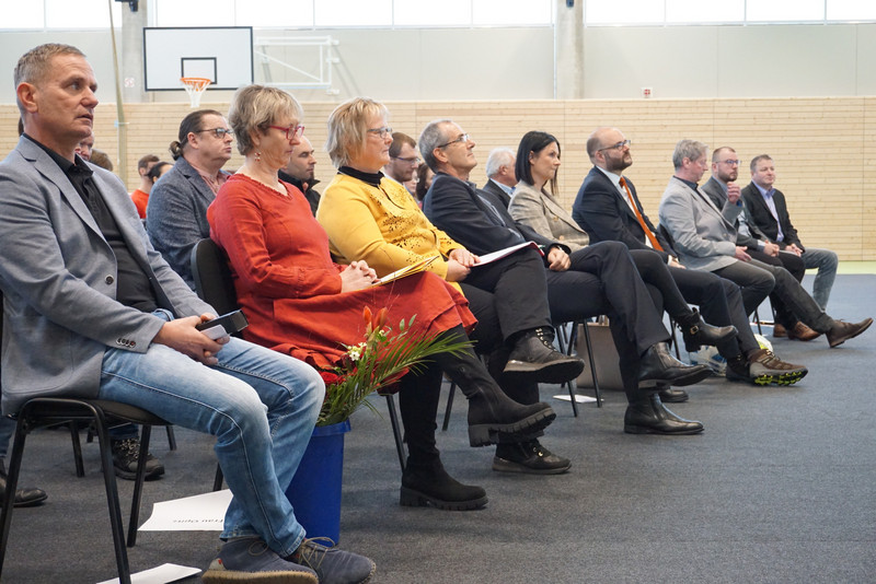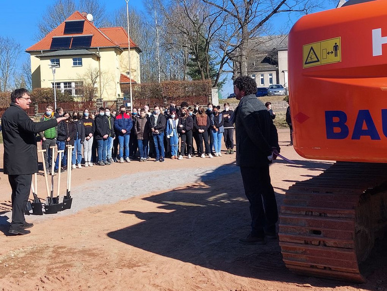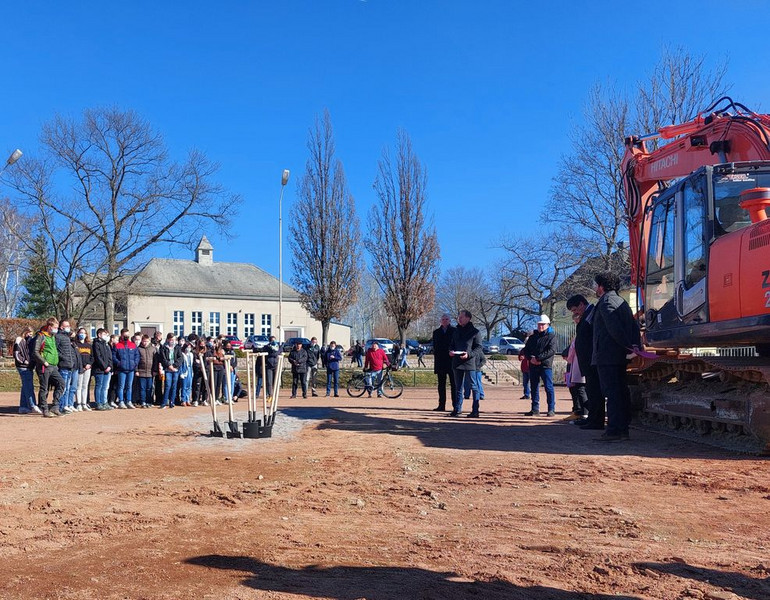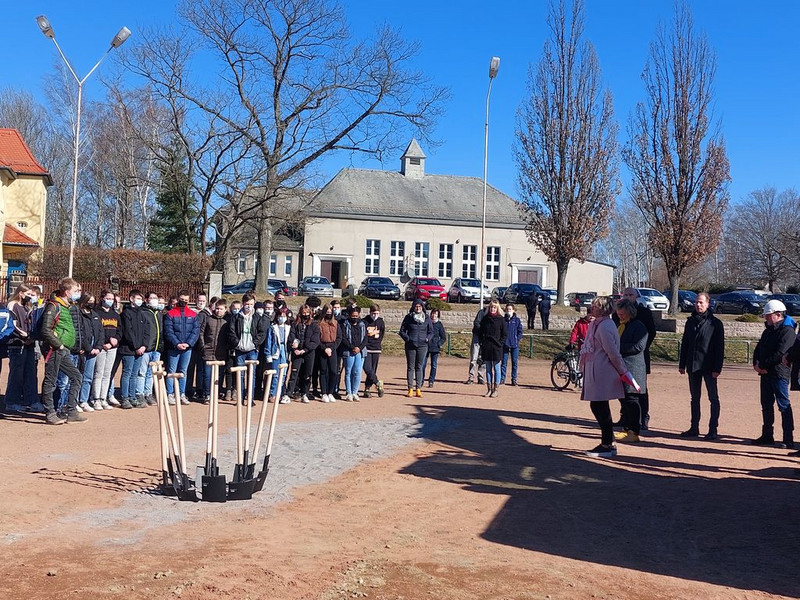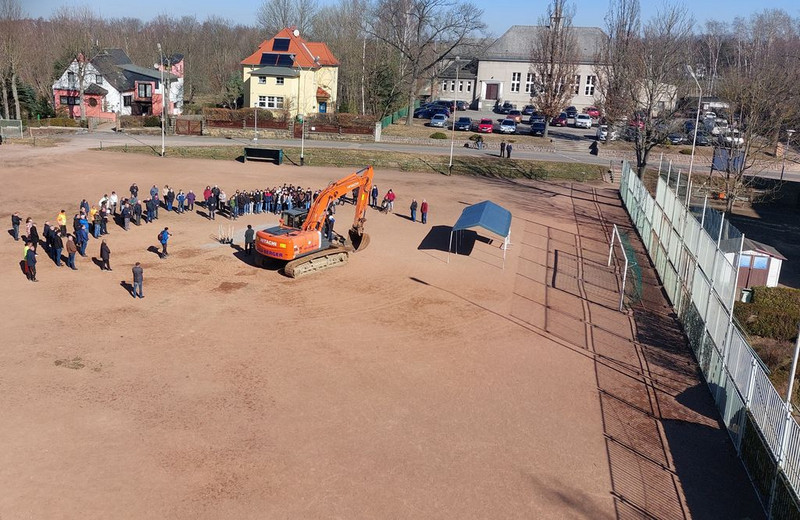 Unter den neugierigen Blicken interessierter Bürger und geladener Gäste griffen vom amtierenden Bürgermeister bis hin zu den später einmal vom Neubau profitierenden Schülern viele zum Spaten. Damit ist der Startschuss zum großen Bauprojekt, welches uns in nächster Zeit begleiten wird, gefallen. Und wenn alles nach Plan läuft, dann kommen wir in Zukunft nicht nur in den Genuss einer modernen Sporthalle, sondern auch eines ansprechend gestalteten Schulgeländes.