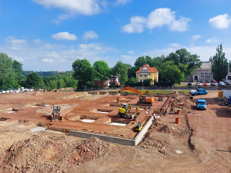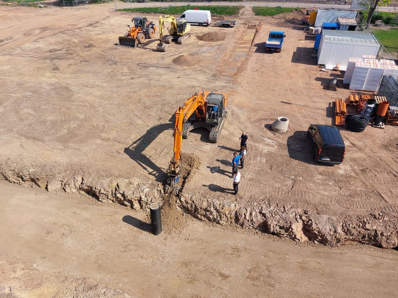 Das schöne Herbstwetter trägt auch dazu bei, dass die Arbeiten auf unserer Baustelle in großen Schritten fortschreiten können. Verschiedenste Gewerke sind Hand in Hand tätig.