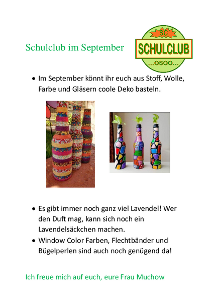 Frau Muchow vom Schulclub präsentiert Euch ihr neues Angebot für den September.
