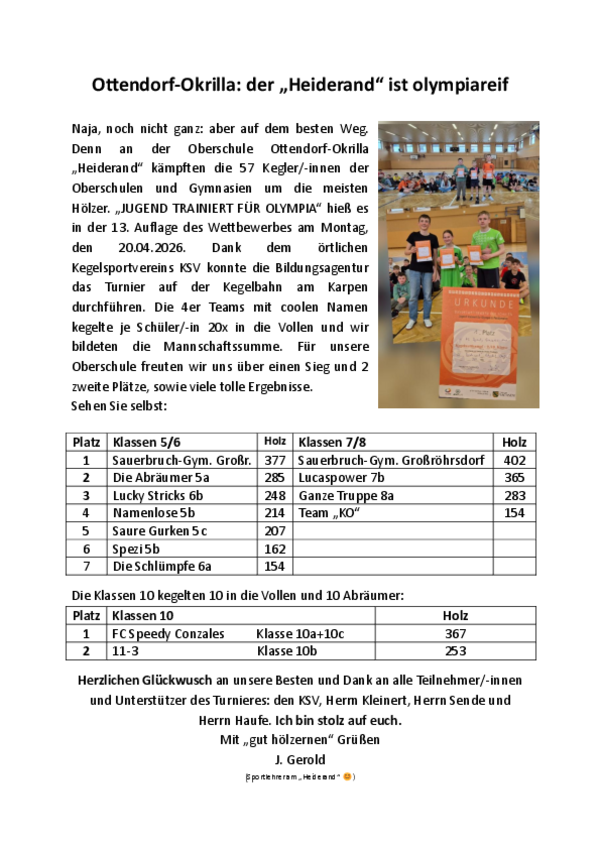 Am Donnerstag, dem 22. Januar 2026, war es endlich so weit: Die Oberschule Ottendorf-Okrilla trägt nun ganz offiziell den Namenszusatz „Heiderand“ – ein bedeutender Moment in der Geschichte unserer Schule, der am Nachmittag im Rahmen eines festlichen Aktes gemeinsam mit Lehrern, Schülersprechern, Elternsprechern sowie zahlreichen geladenen Gästen würdig gefeiert wurde.