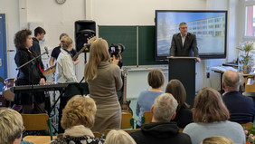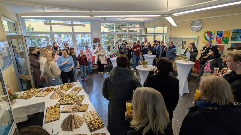 Im Anschluss lud das Foyer der Schule zum geselligen Ausklang ein. Bei einem Glas Sekt oder Saft kamen Gäste, Lehrer, Schüler und Eltern ins Gespräch. Für das leibliche Wohl sorgten WTH-Schüler mit herzhaften Häppchen und köstlichen Kuchen.