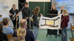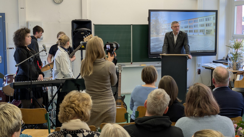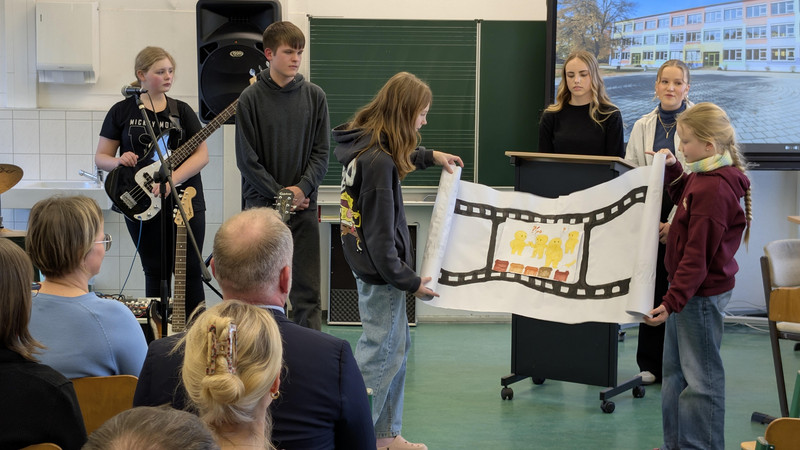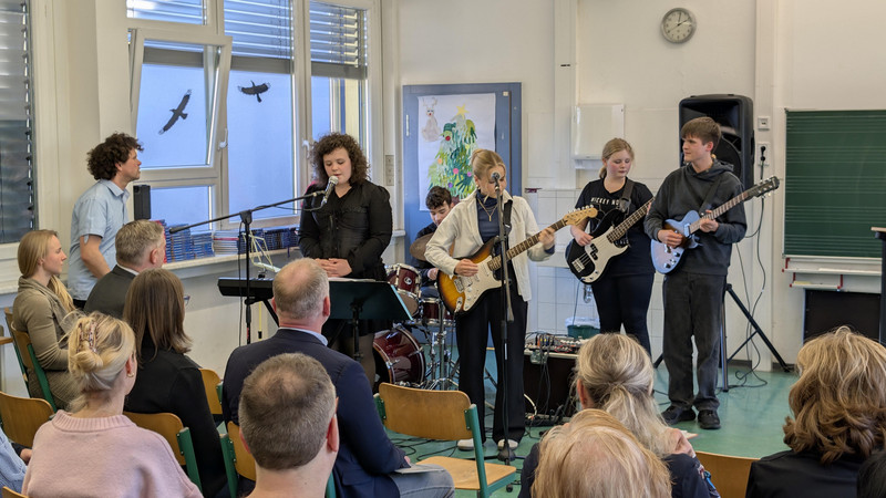Die Veranstaltung begann musikalisch mit einem beschwingten Lied unserer Schülerband, das den feierlichen und zugleich herzlichen Ton für den Nachmittag setzte.