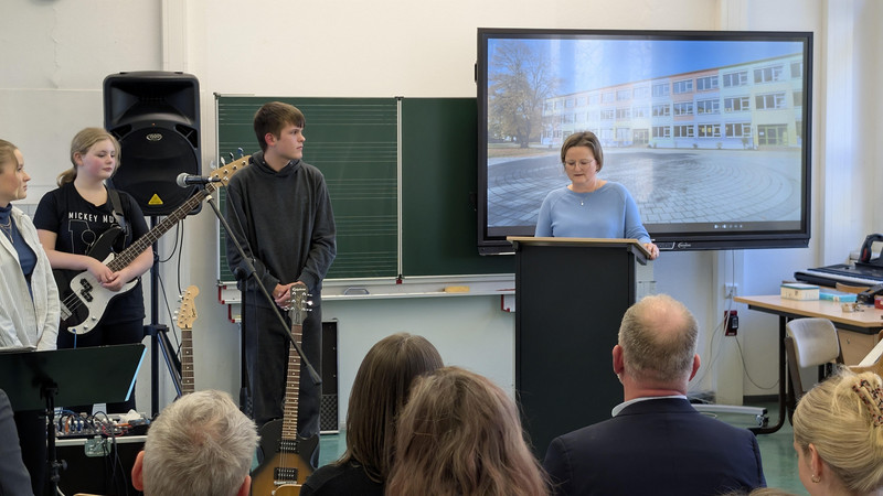 Es folgten Grußworte von Frau Grundmann, Sachgebietsleiterin im Schulamt des Landkreises, die die Bedeutung von Mitbestimmung, Schulentwicklung und Engagement in ihrer Ansprache würdigte.