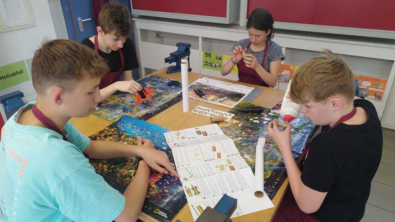 Anschließend ging es in die WTH-Werkstatt, wo die Schüler echte flugfähige Raketenmodelle bauten.