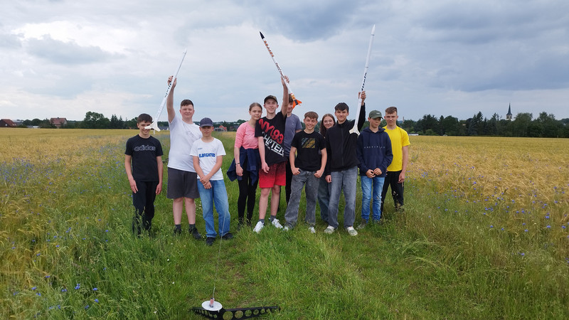 Eine Woche später war es endlich soweit. Die Gruppen starteten die bis zu 1,30m langen und 120g schweren Raketen auf örtlichen Wiesen. Die Starts und Flüge waren allesamt spektakulär. In der maximalen Flughöhe von 270m wurde eine als Nutzlast mitgeführte Kleinstkamera ausgesetzt, welche Luftbilder von Ottendorf-Okrilla aufnahm.