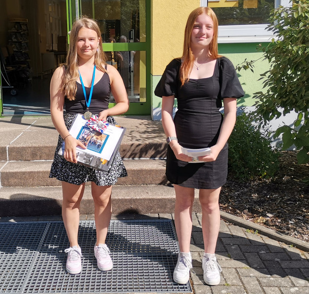 Lisa S. (8b) und Klara S. (9a) für die erfolgreiche Teilnahme an der Französisch- bzw. Englisch-Olympiade. Beide Schülerinnen hatten sich für den Landesausscheid qualifiziert und erreichten dort achtbare Platzierungen.