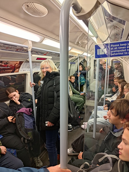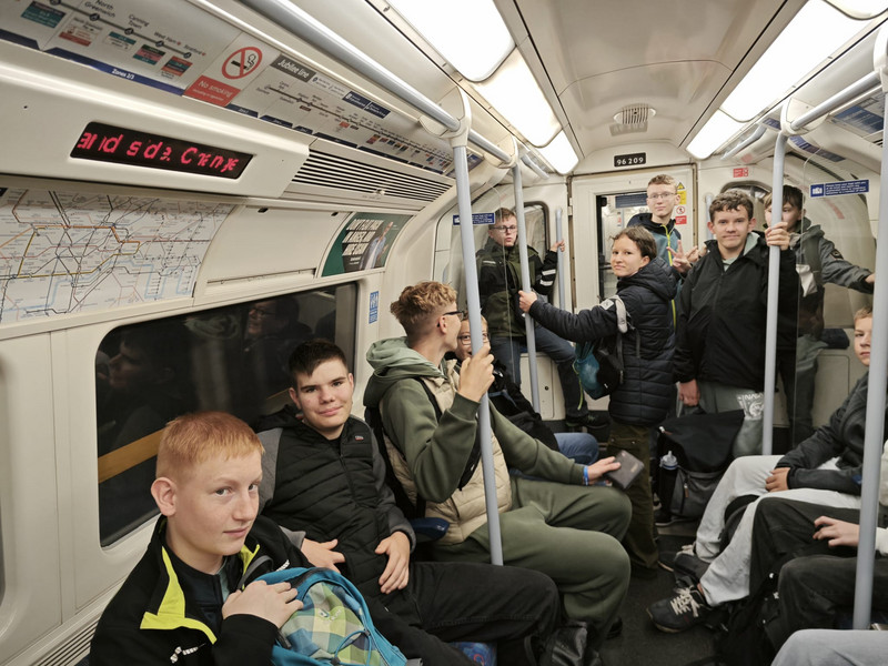 On the third day, we met at 8 a.m., and the bus took us to the O2 Arena in London. When we arrived, we went to the underground station "North Greenwich." Entering the underground for the first time and seeing it in real life was really cool. We had already covered it many times in English lessons, but this was something completely different. We quickly found the right tube and got on. Unfortunately, it was very crowded, so some people had to stand. We travelled for about 20 minutes.